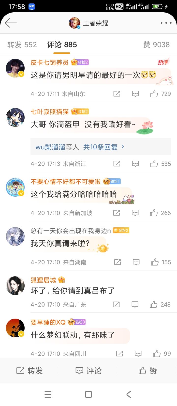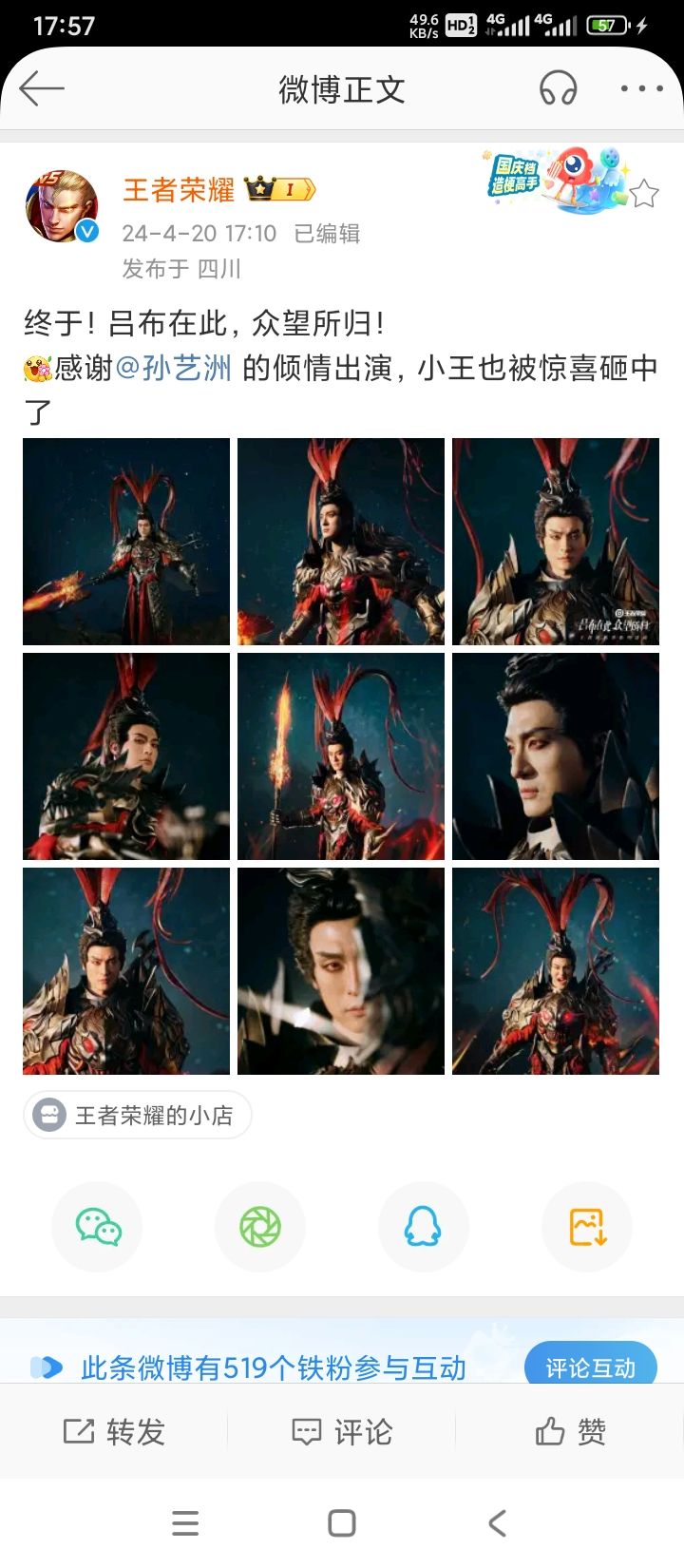 今天20号,王者荣耀发文感谢孙艺洲!