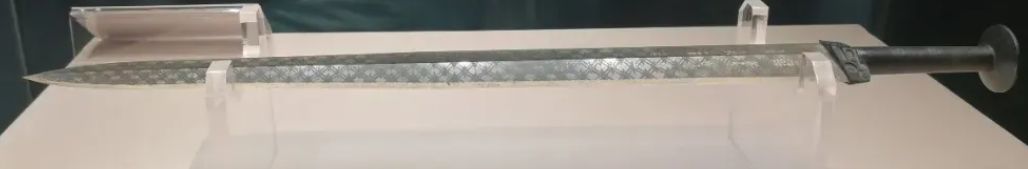 她的剑,不仅是青铜铸就的武器,更是春秋时期工艺的巅峰。黑色的菱形花纹,蓝色的琉璃,绿松石的镶嵌,每一处细节,都透露着古人的智慧与艺术的精湛。