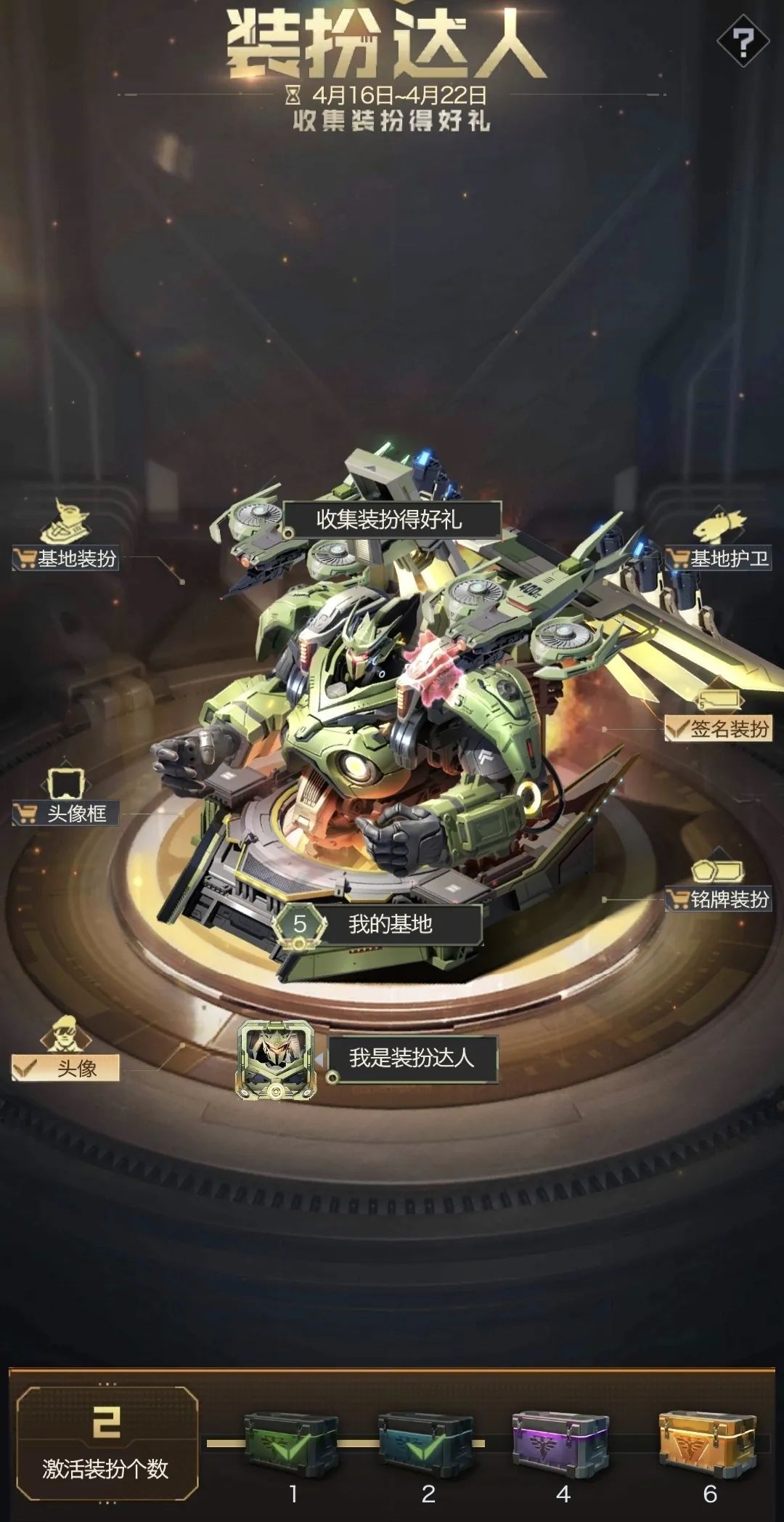 活动期间激活突击装甲装扮数量达到指定目标即可领取对应奖励宝箱,激活6种突击装甲装扮,即可免费获得万能装扮碎片。