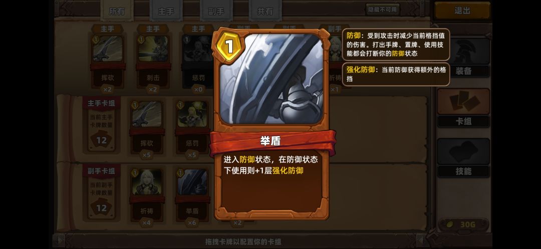 主手卡牌比较乱,主要是走副手格挡防御。