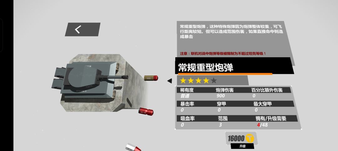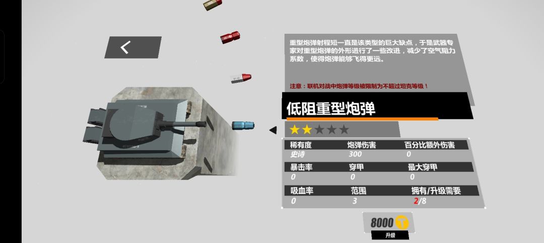 重型坦克的炮弹攻击距离短,在长距离对战中基本处于劣势,低阻重型炮弹可以增加炮弹的攻击距离