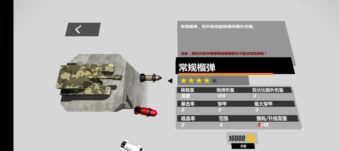 )该坦克的特点是发出的炮弹具有范围伤害,移动速度缓慢且两次攻击间隔较长。