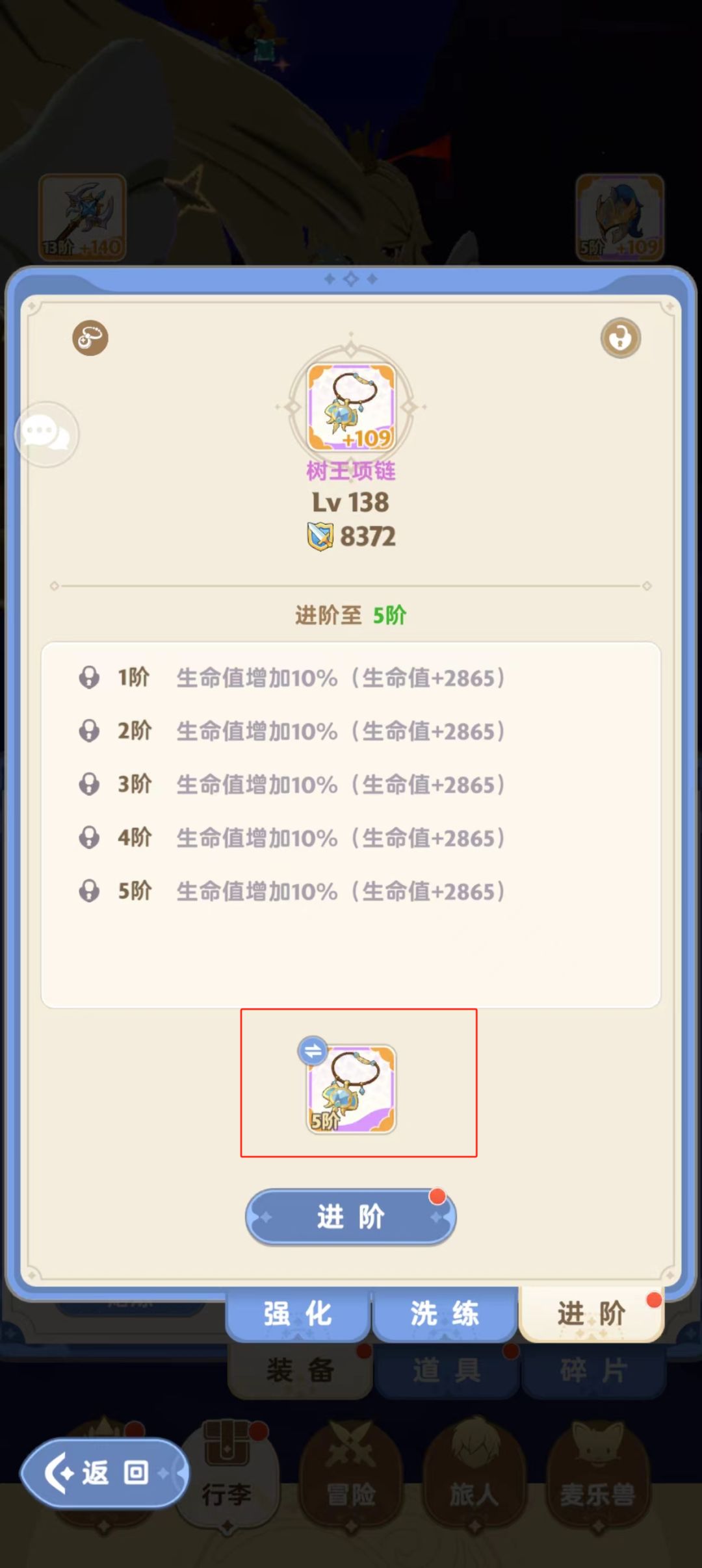 4.强化旁边有个精炼按钮,不要乱分解橙装。高阶紫装喂0阶紫装的时候要注意补一定数量的0阶紫装。秘境打完不要立刻换装,等出现高级货(比如全4级)再换。
