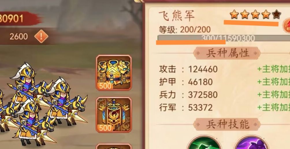 兵种升级需要消耗战功(获得方式见第三部分),而且随着等级提升,消耗战功数量呈指数级增加,200级以上升级很困难,所以建议升到150-200之间为宜。
