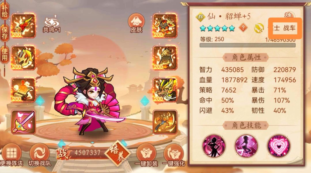 这里需要提醒一下的是,如果转职后的兵装不足,可能导致转职后实力不如转职前的情况,比如橙0兵装的骑兵,面板属性是不如金+9的骑兵的,但转职可以多一个天赋,所以如何取舍看个人吧。