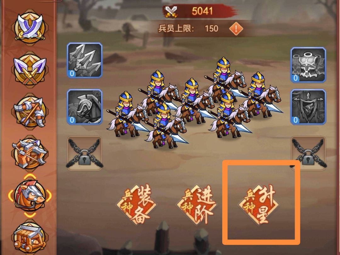 当背包里有对应的兵种的战录时,点击下方“兵种升星”图标就可以消耗战录提升兵种星级。