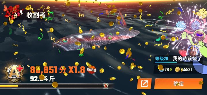 9.对决刷分5体力是最划算的,只需要5体力就可以钓3w左右的鱼重,肝帝福音