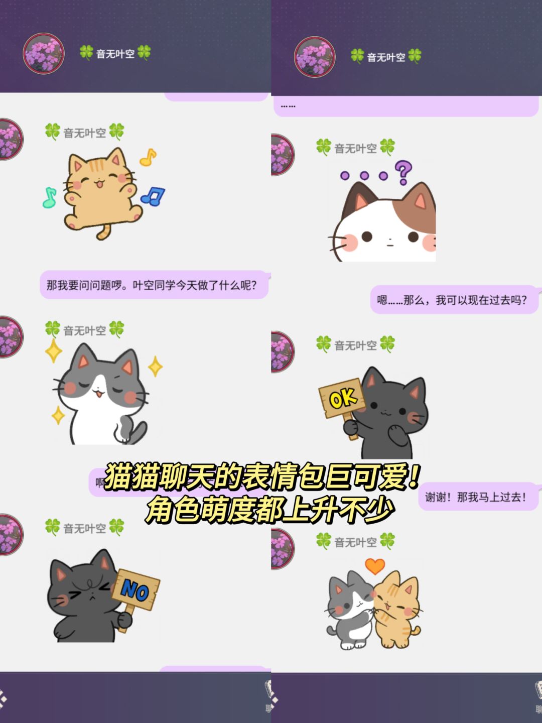 原本是被美男子吸引进来的,结果游戏里的猫猫太可爱了,无论是过场漫画还是聊天的猫猫表情包都巨萌,玩得嘴角一直上扬,加上我选的羊瞳学长是聊天中不说话直发猫猫表情包的设定,感觉他整个人都可爱起来了