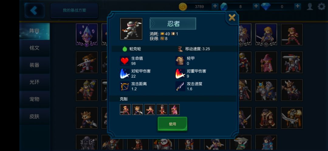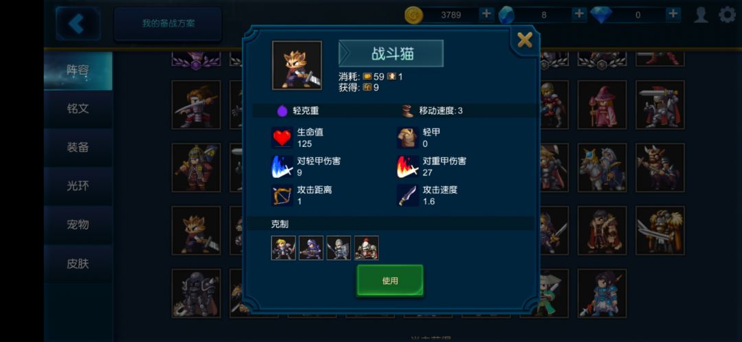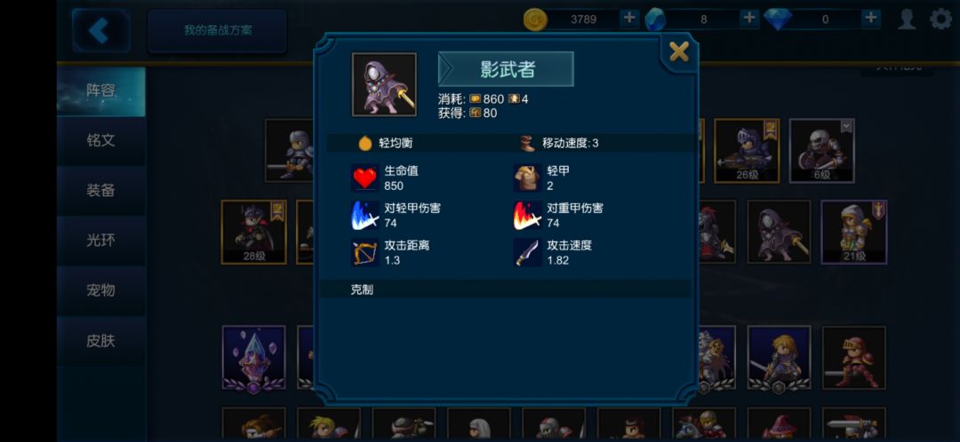 常用搭配:看对面出啥,轻甲多例如骷髅不朽就野猪影武者或者影武者出的多就木乃伊影武者。重甲多就猫影武者鹰身人影武者。影武者配马也不错。但影武者对数量要求比较高,一般影武者最少出7个才有高速推进能力。而且必须前排。所以以搭配一阶单位为益。