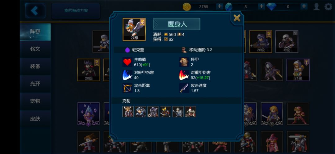 介绍:强力克重单位,管你重克轻中克重还是中均衡一律平等。重甲只怕石头人五五开,劣势对局铁甲骑士四六开鹰身人六。清重甲剑兵最快的单位(不算几个克重四阶兵),打马专业户,乱杀野猪木乃伊重甲剑兵马等多重甲混兵。鹰身人对同类三阶兵的优势在于足够便宜,克重效果足够强悍。有灭杀重甲英雄能力