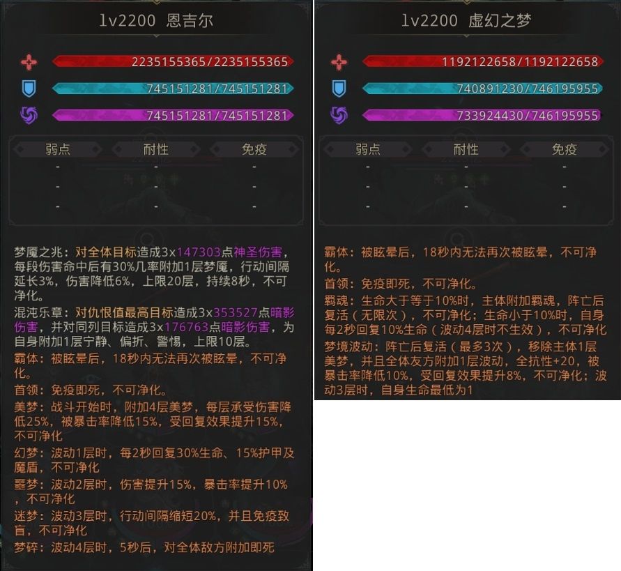 简述:测试环境BUG中,可彻底击杀虚幻之梦后,转恩吉尔;阵容满毒+致盲,副体压血击杀主体;秘境48层放弃盲目buff;