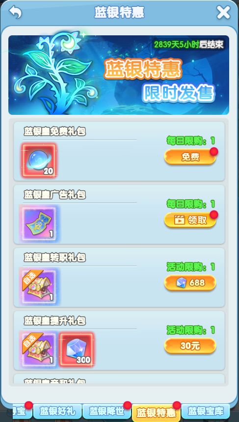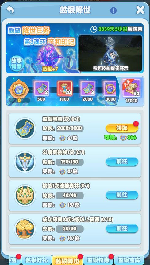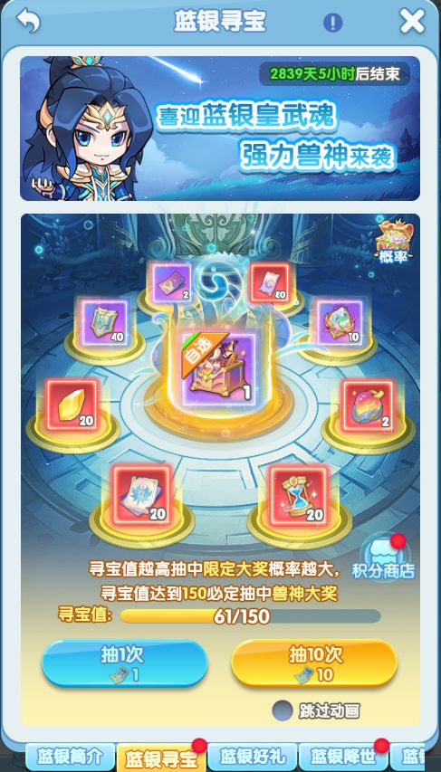 活动简介:活动期间,将开启蓝银简介、蓝银寻宝、蓝银好礼、蓝银狂欢、蓝银特惠、蓝银宝库等6项内容
