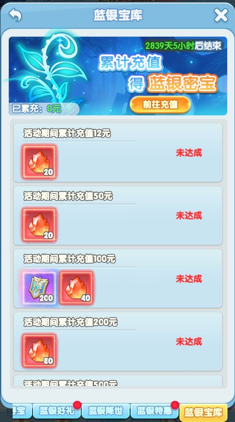 活动期间,蓝银宝库开门面世!玩家累充达到指定金额,即可前往宝库领取秘藏好礼!