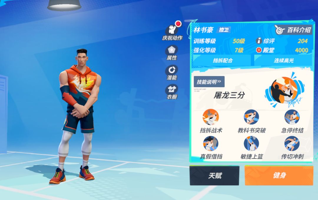 林书豪连续运球两次并跳投三分出手。再次点击“屠龙三分”可在运球一次时提前出手。如果出手时林书豪处于林疯狂状态,三分命中率大幅增加。解锁天赋专属技能:挡拆分球后,运球两次时可在出手前将球传出。
