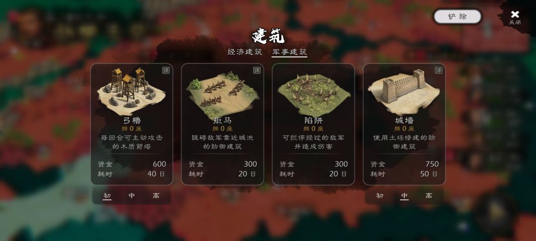 建筑:每次消耗1点行动力和此城资金,建造建筑