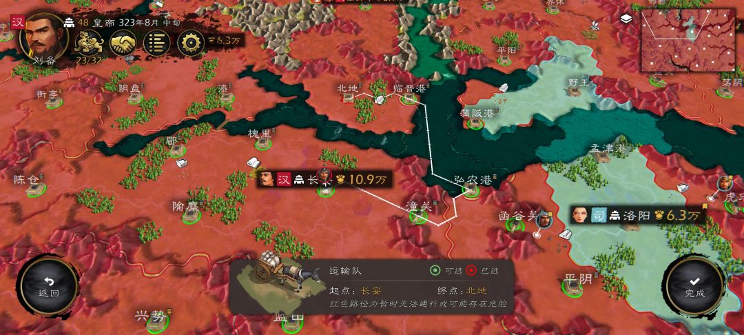 运输的重点:没有漕运不能从水路运输,而且如初始路线选择有水路,那么运输武将会移动到港口时,卡在港口不动,一直傻站着,直到官僚建出漕运