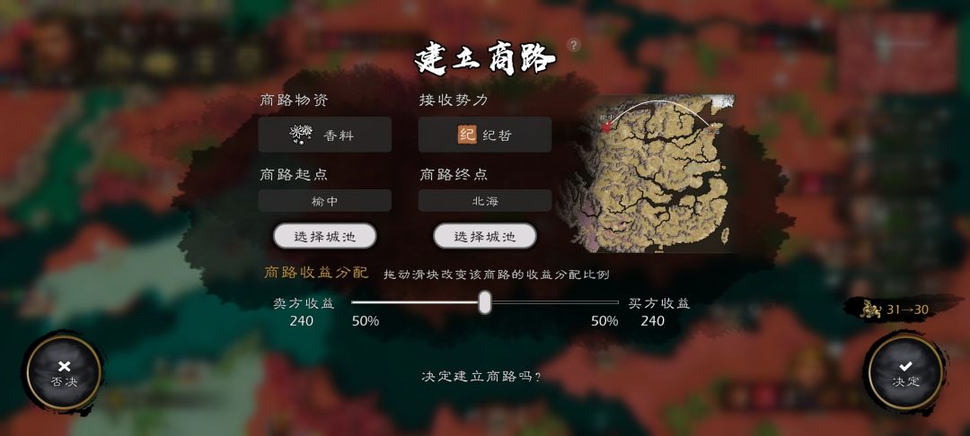 终点可以随意选择,左上角可更改势力,但如选择其他势力,也会出现被拒绝的情况
