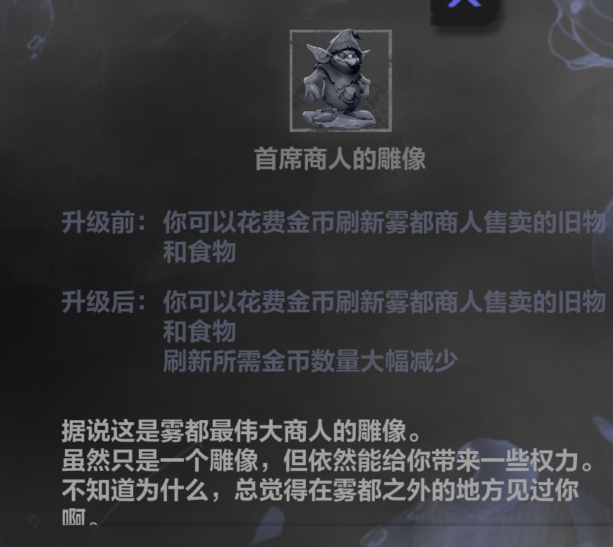 其中厌食护符必须升级,但黑山羊角升级优先度较低,排在商人刷新之后,同时也需要商会徽章—食物的支持。