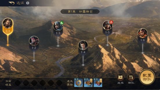 远征玩法是让玩家配置自己的部队去挑战守军,进行连续挑战,且远征过程中无法更换部队配置。每战胜1个关卡可以恢复部队少量的血量;战胜特定关卡后,可以选择增益状态或恢复兵力。