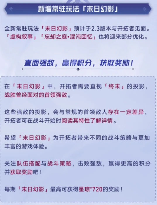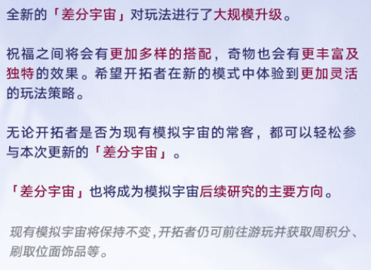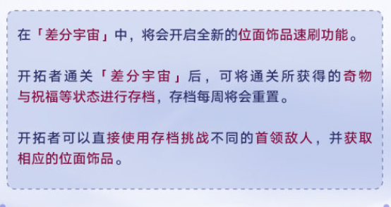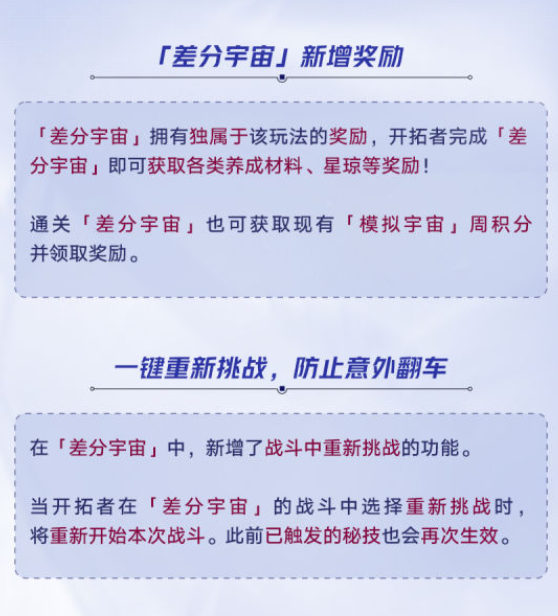 「差分宇宙」有新增的星穹奖励,并且可以获得每周积分
