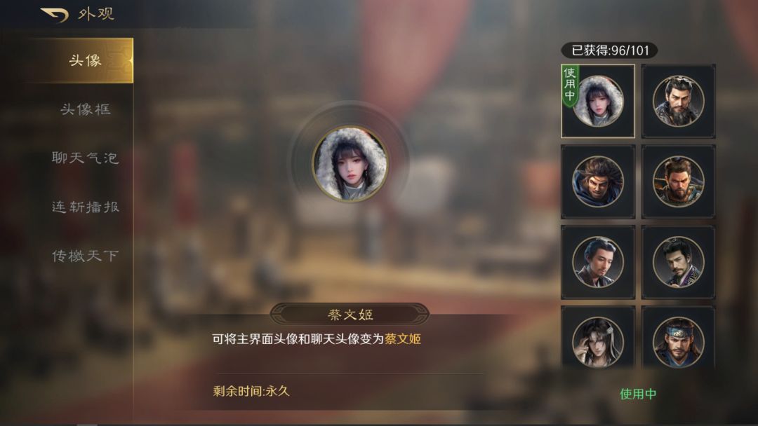 可更改头像、头像框、聊天气泡、连斩播报、传檄天下。
