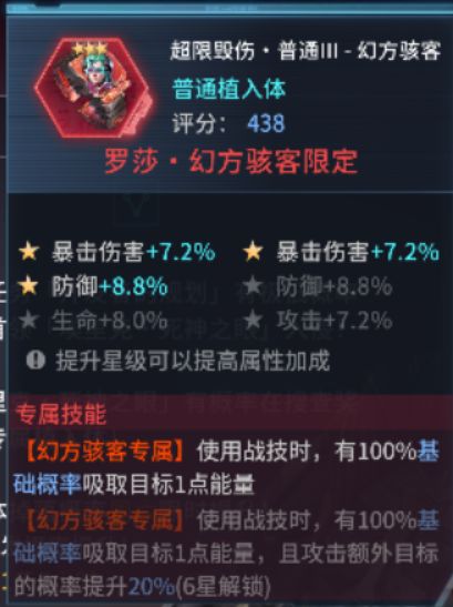 罗莎·幻方骇客作为功能性的破坏,专属植入体也是搭配了吸能量的特性,非常适配。