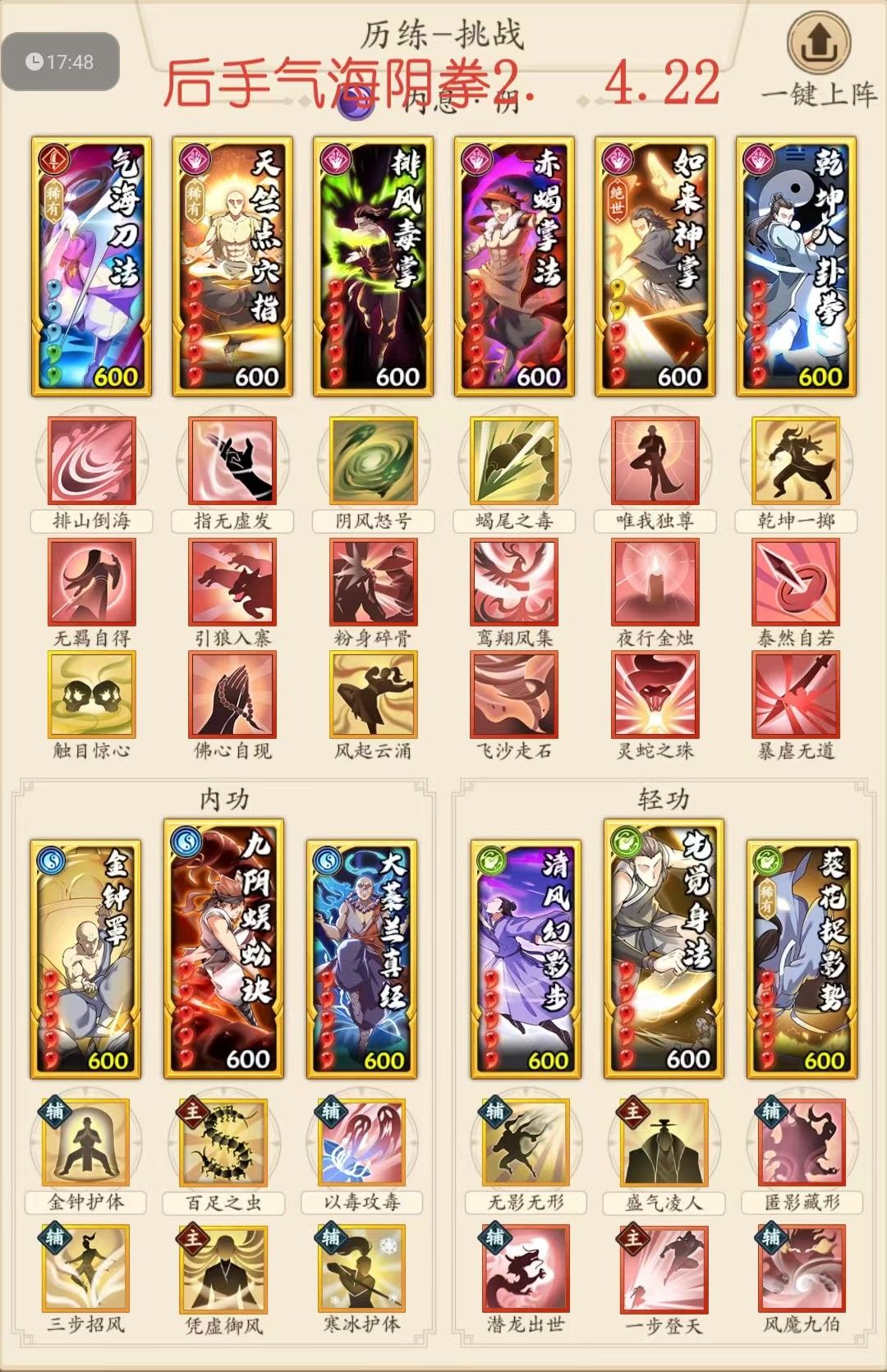 共两版(此套配招争议性过大,因气海开如你是先手方,你的气海打在风魔上属于白给)
