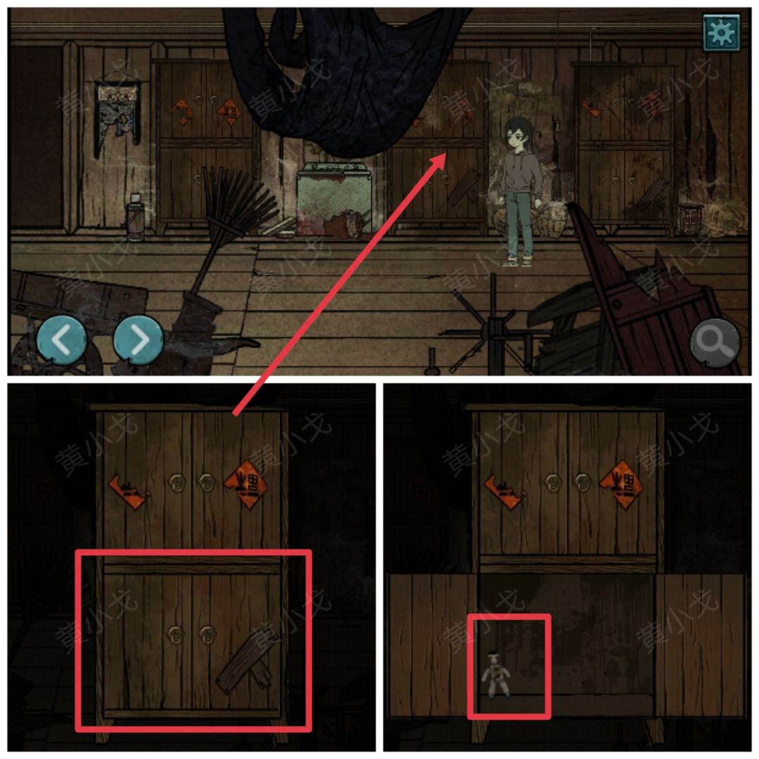 6.(二楼-左侧房间)点击打开中间的柜子,点击人偶(要先去一楼找)