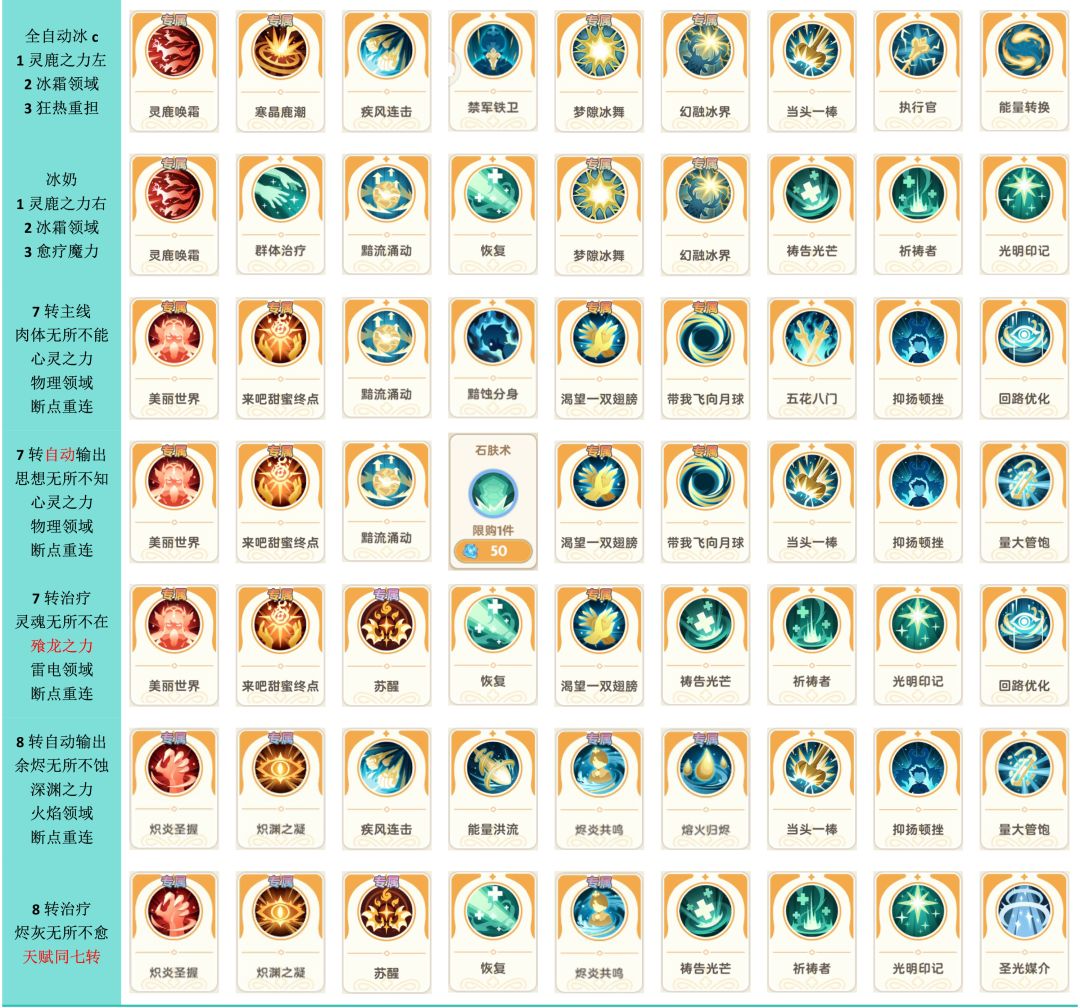 5.5. 简要说一下服事0转技能自选顺序,恢复大哥大不谈;神圣/屏障/净化/群疗有就行,最好要紫;祷告光芒、光明印记哪个蓝先换哪个,都紫了的话,先换祷告光芒。