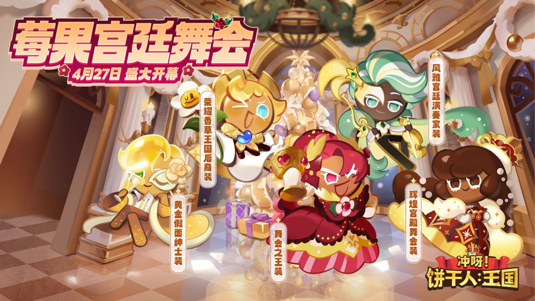 4月27日,「莓果宫廷舞会」超级稀有服装特别UP将开启,诚邀所有饼干朋友们,共同加入这场盛大的舞会~