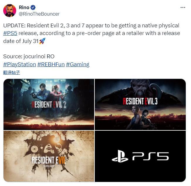 近日,一家罗马尼亚零售商JocuriNoi的商店页面列出了《生化危机2:重制版》、《生化危机3:重制版》、《生化危机7》的PS5实体版,这引发了人们对卡普空即将推出实体版的猜测,这三款游戏目前都获得了原生的PS5数字版。