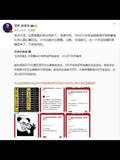 石油杯LOL奖金只有100万,孙亚龙怒批:DYS也能举办!