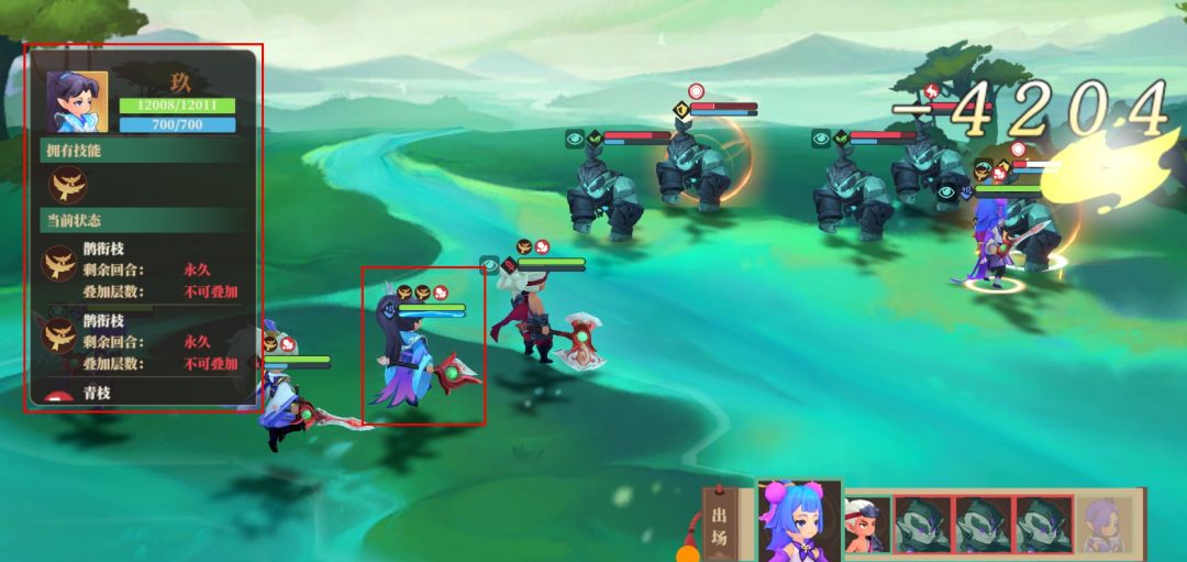 3·战斗过程中,点击想要查看的角色,可以看到该角色的技能与战斗buff等信息。