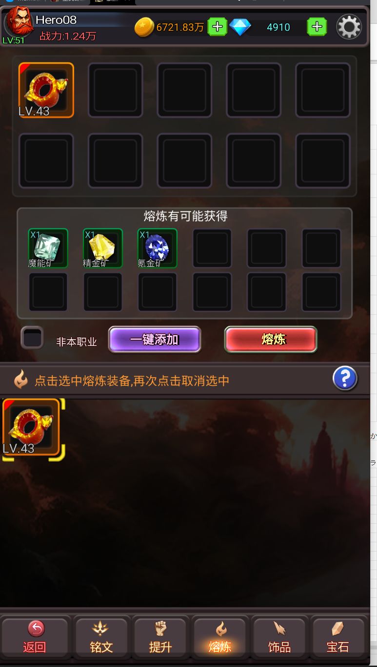 可以将多余的好装备进行熔炼,获得饰品材料,提升饰品等级