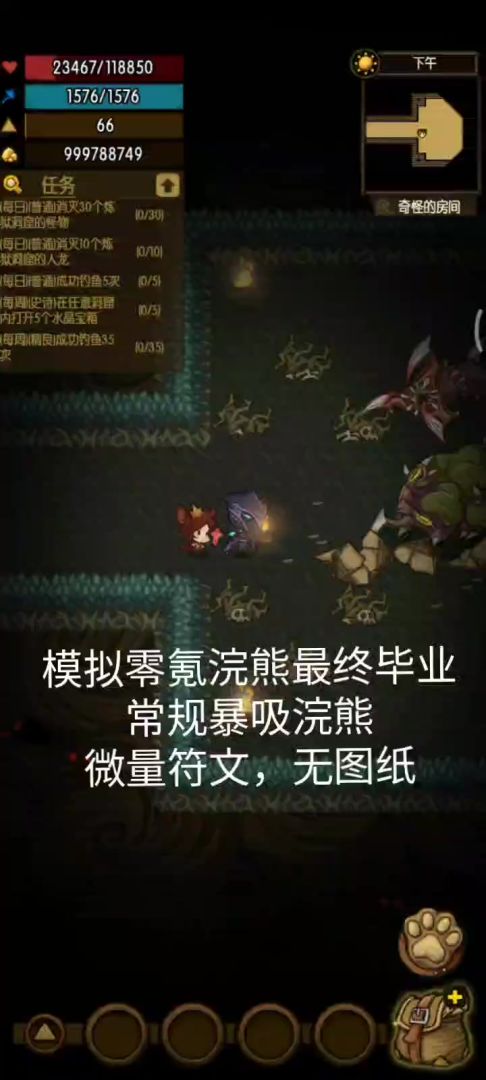 c.开局释放宠物2技能,且每隔至少18秒释放一次,有多余的技能点可以释放3技能(在开打之前脱装备再穿装备可以将回血量控制在1000左右,不影响残血的状态)。