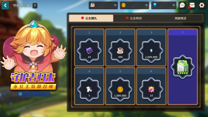 【回归守护者】在活动时间内登录游戏,即可触发【小公主特别召唤】活动。