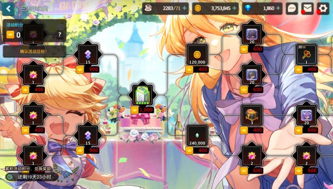 开放三周年主题浮游城场景,同时三周年期间浮游城小公主的礼物会出现特别奖励~