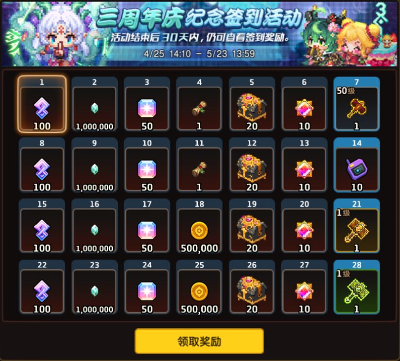 7)三周年庆 接力礼包