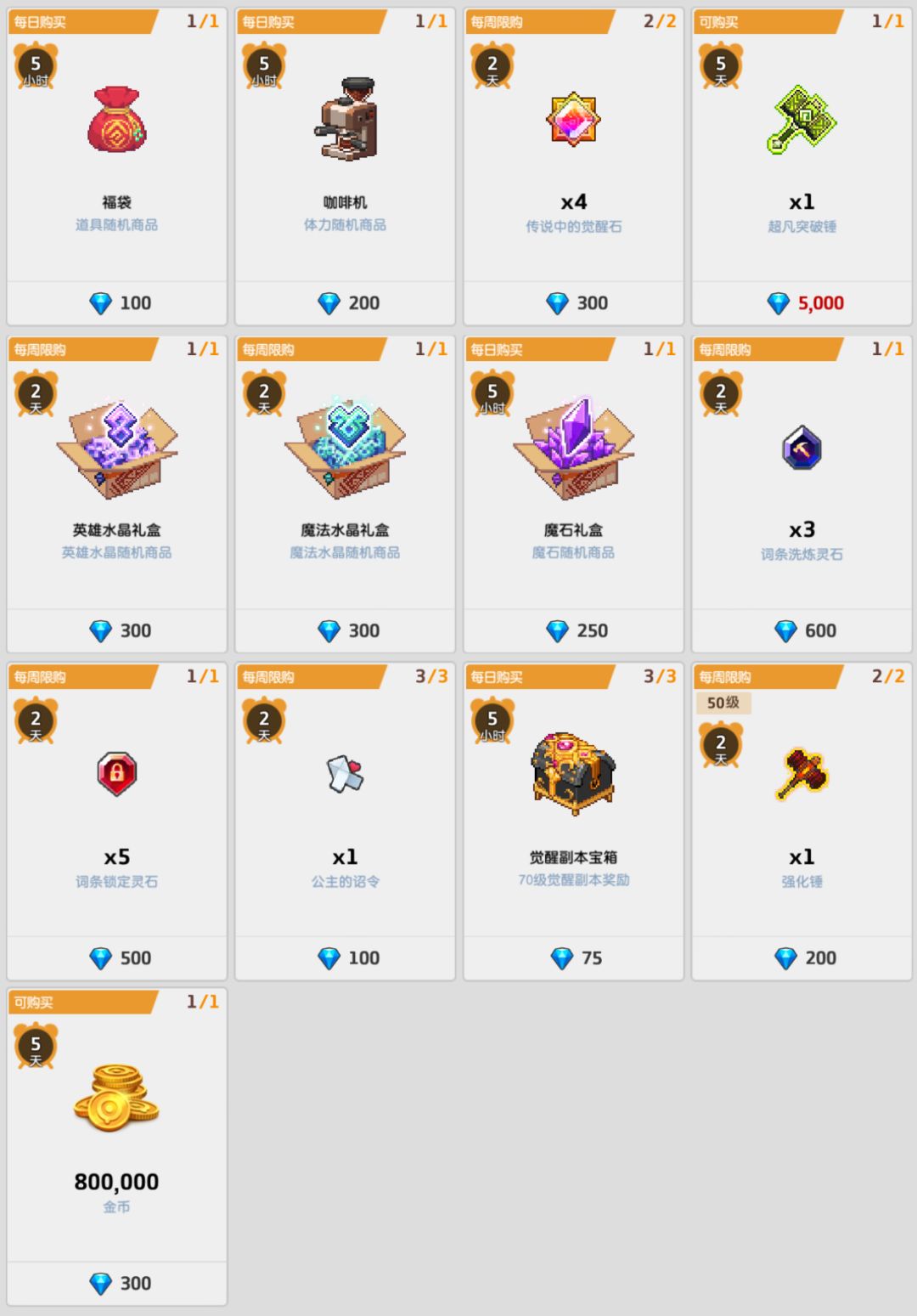 *可选内容:超凡突破锤*1/召唤寻呼机*40