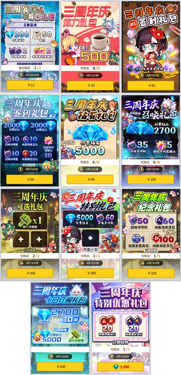 ※礼包1.三周年庆 特别自选礼包