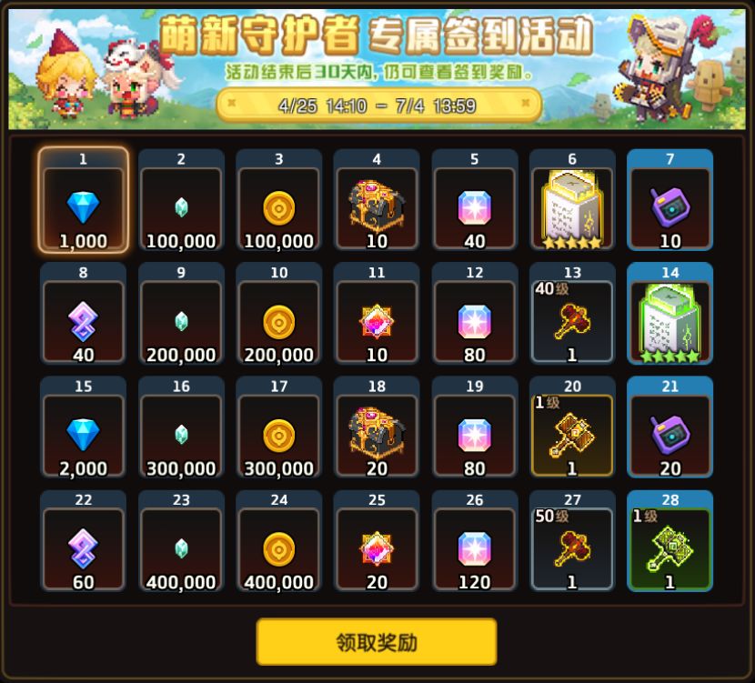 -活动时间内,4月25日维护后新创建角色的玩家,即为【萌新守护者】