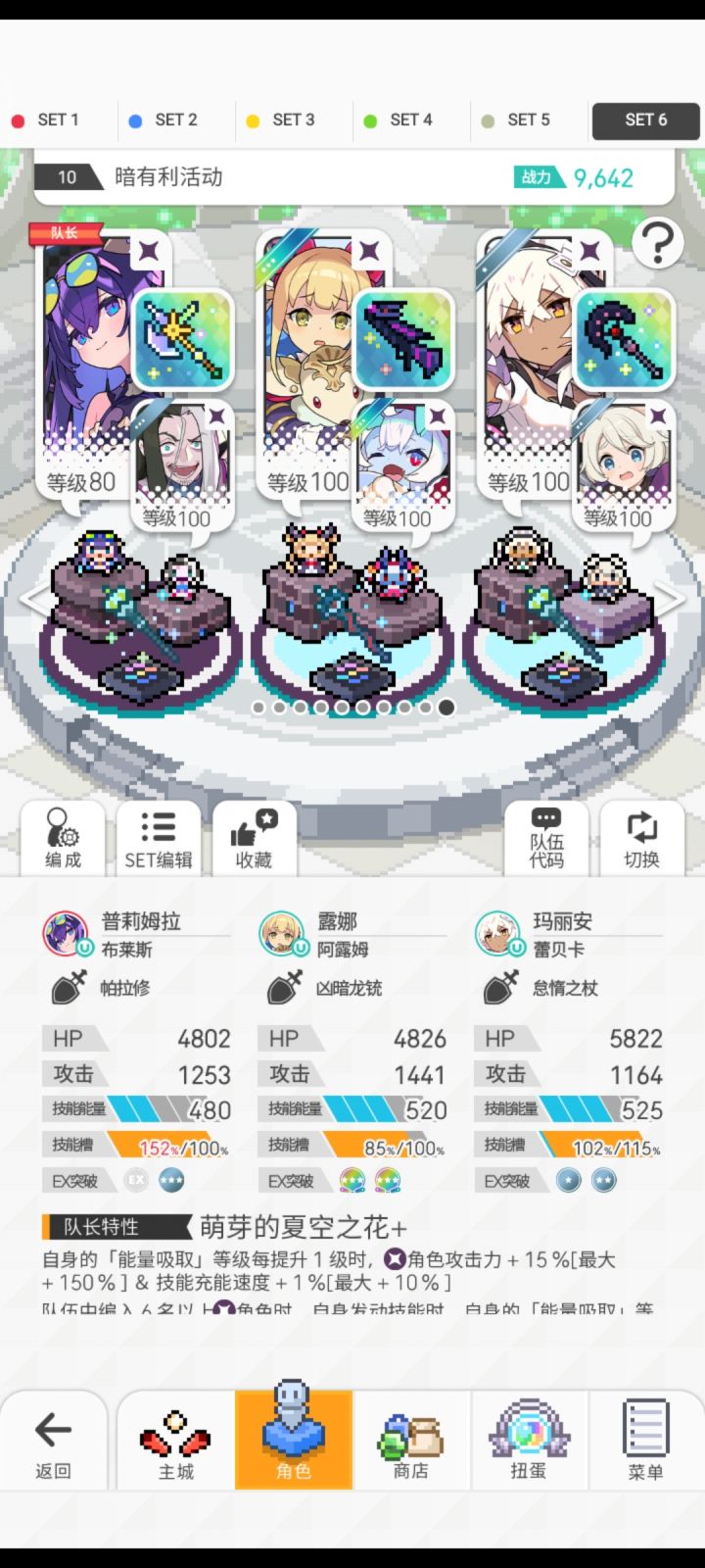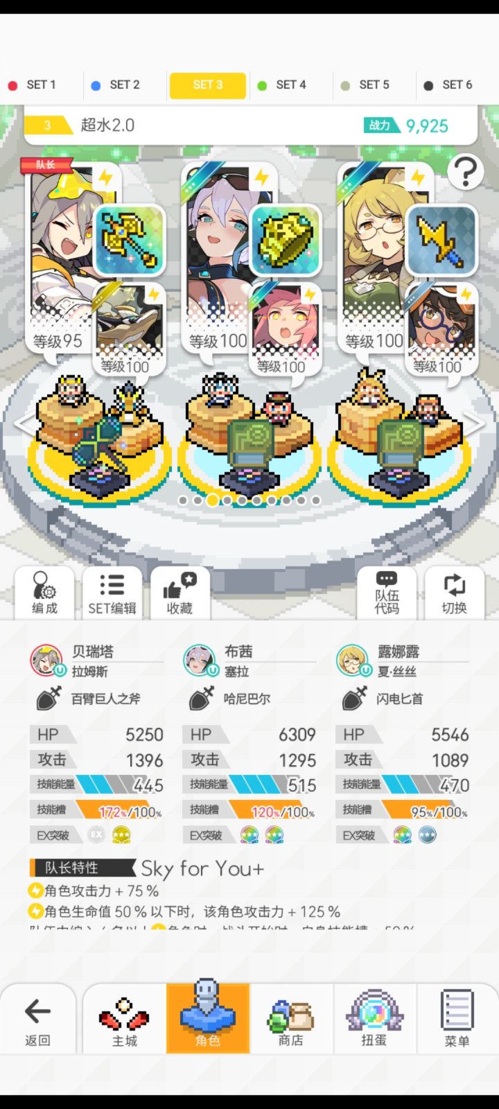 2.泳百合,打超光(共斗)自动(注:自动不稳定),第一个大招秒小机器人(稳定性在85%,因为AI弹射出去时候,瞄准最左边或者最右边时,炼金的技能触发不了),小机器人秒了后弹射到最上面,这时候女仆开两次技能,暗兔为队长泳百合和2号位圣阿充能,这时候如果刚好也是2号位的技能触发范围,二号位就会开技能,圣阿的技能又会给队长充能,接着队长再开技能,boss不死但会残血。上面说的2号位触发技能,如果触发不了,那就会掉下去,再弹射上来冲刺,然后触发2号位技能再队长技能。