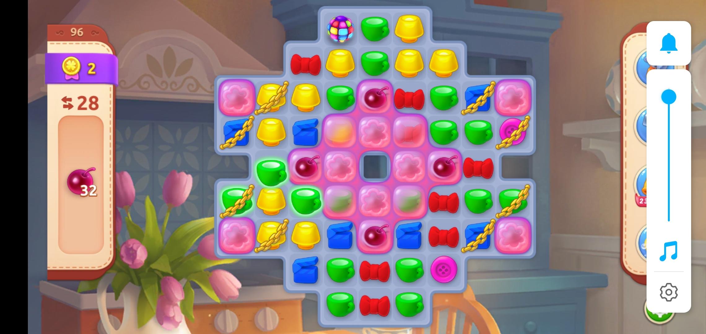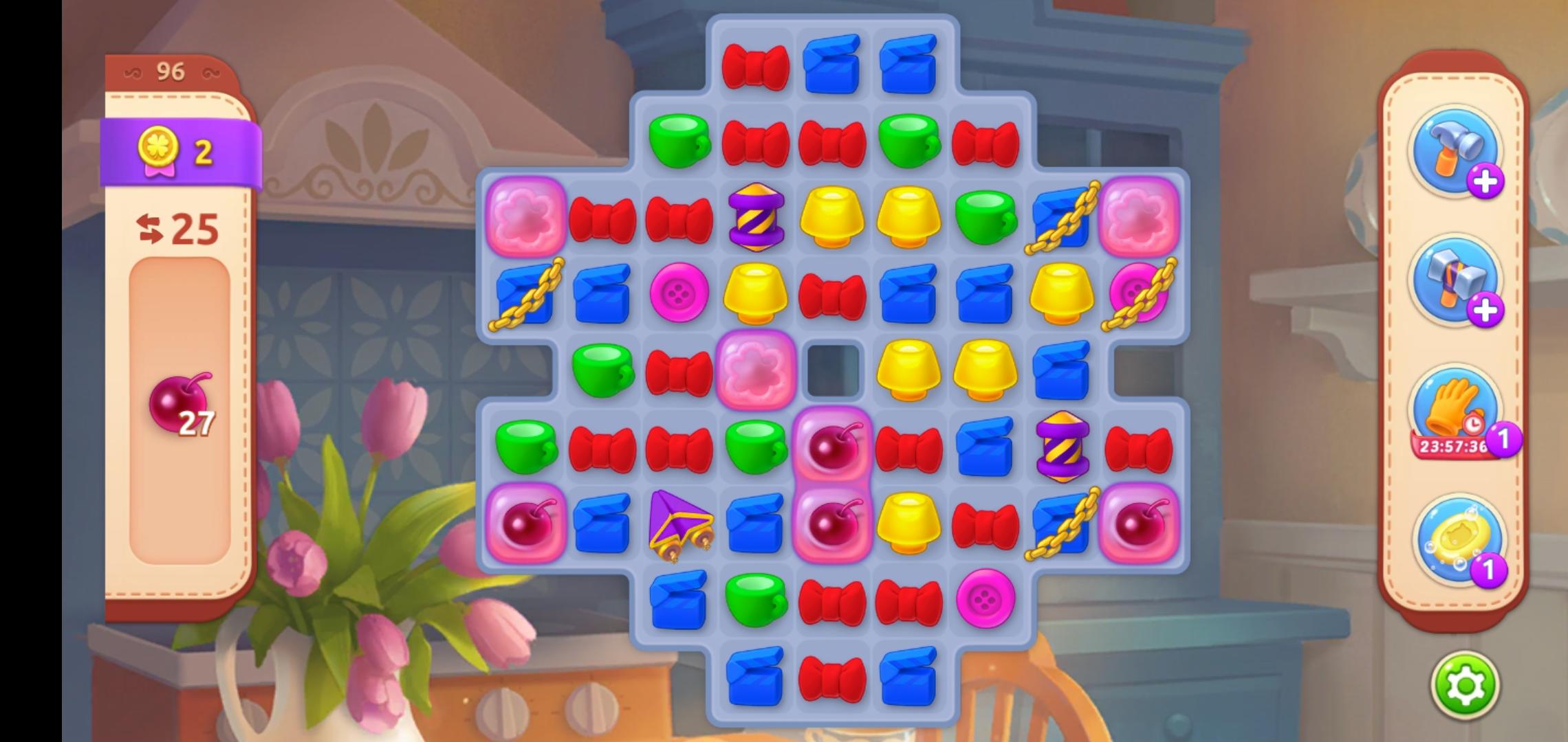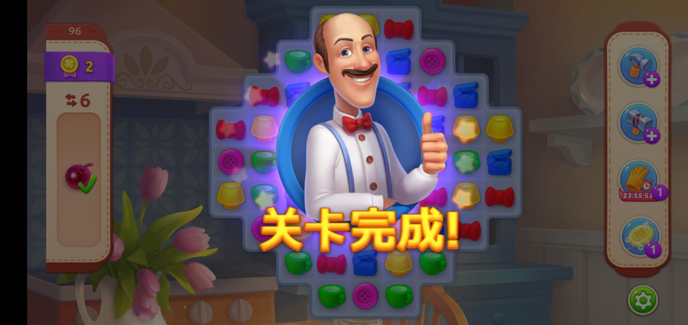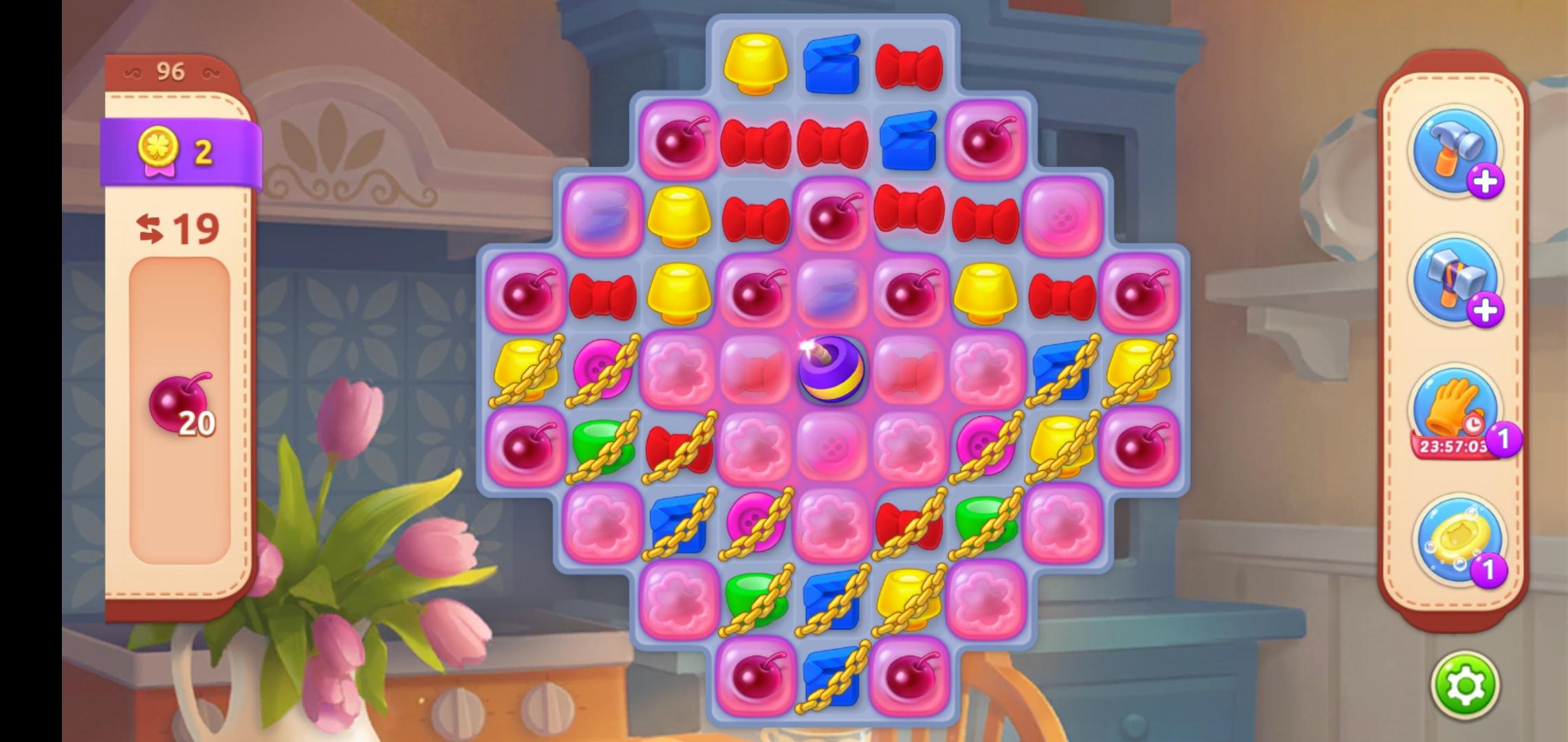 这2张截图看到没,上面樱桃收集完成了,直接出来第二个场景,第二个场景樱桃都被果冻冻住了,还好,开局有个炸弹,我炸