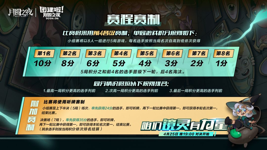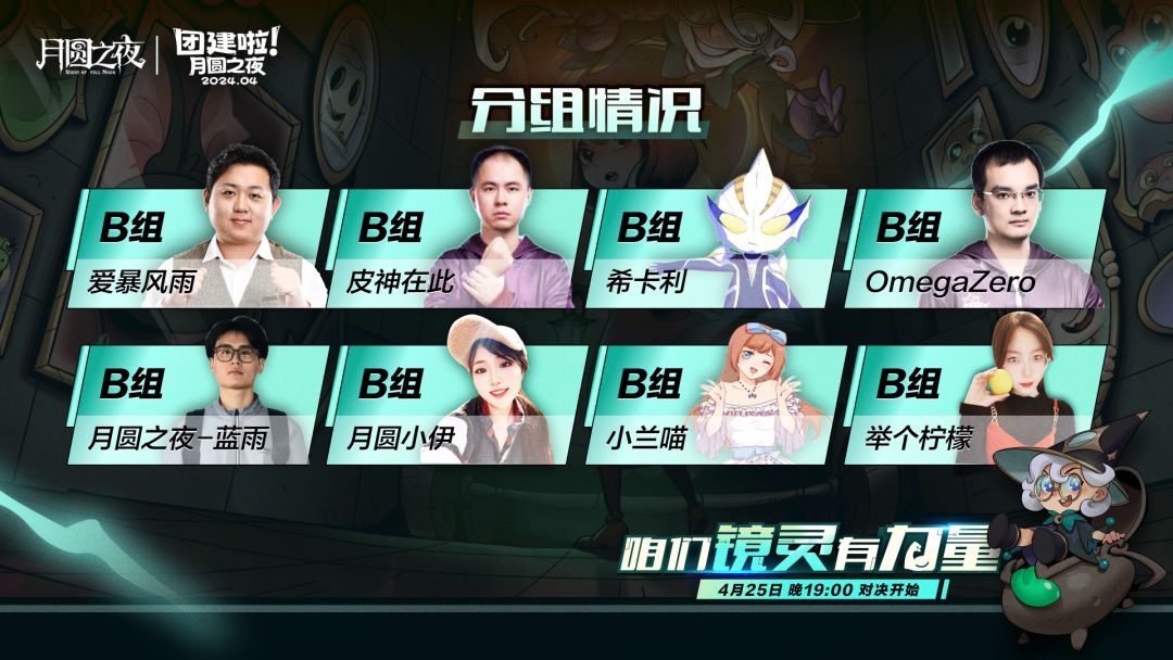 4月25日晚19:00对决开启!所有玩家都可以前往【月圆之夜B站、抖音、斗鱼官方直播间】或【各大主播直播间】观看比赛,一起来学习新版本运营思路和上分套路吧!