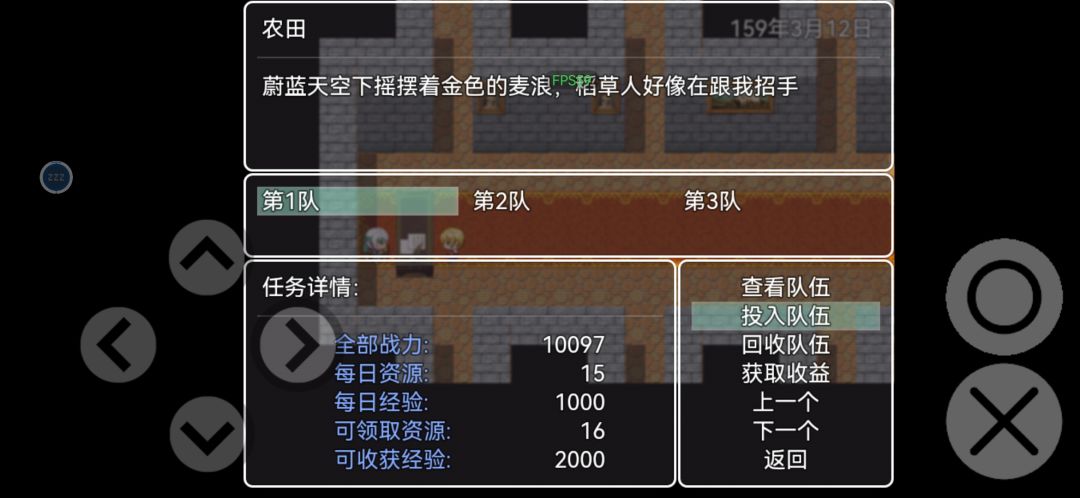 赚钱:麦田,点击稻草人放入一个编队,每日超出2。产出和战力相关。