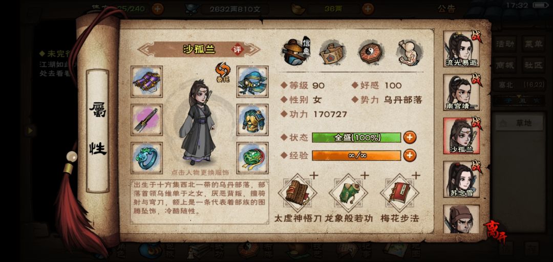 限定绝版随从沙孤兰——能主动与被动隐身,刀法资质仅次于商。