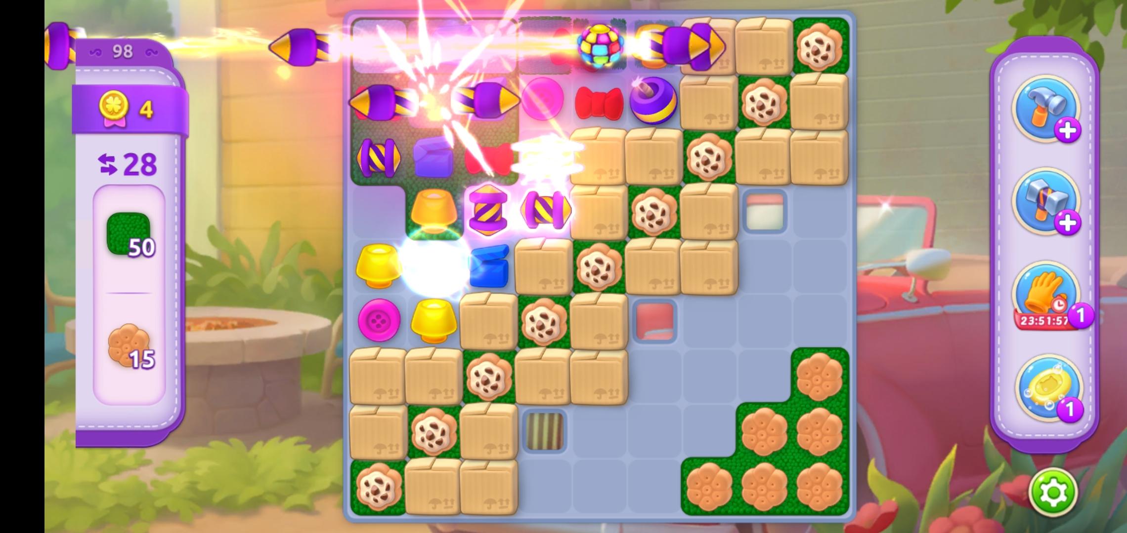 人品爆发了,来了一个火箭火箭🚀酷比了,彩虹球和炸弹,随着火箭全部炸开,障碍物炸开一大半,同时草坪收集一半![[嗒啦啦2_真香]](https://img.tapimg.com/market/images/f0a29a08836af78153873e373d55a1c5.gif)