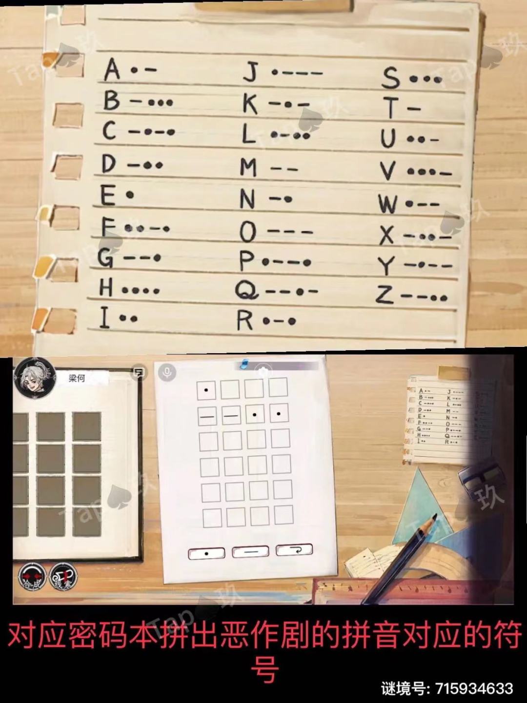 点击提示,获得线索(恶作剧拼音)右上角有密码本。
