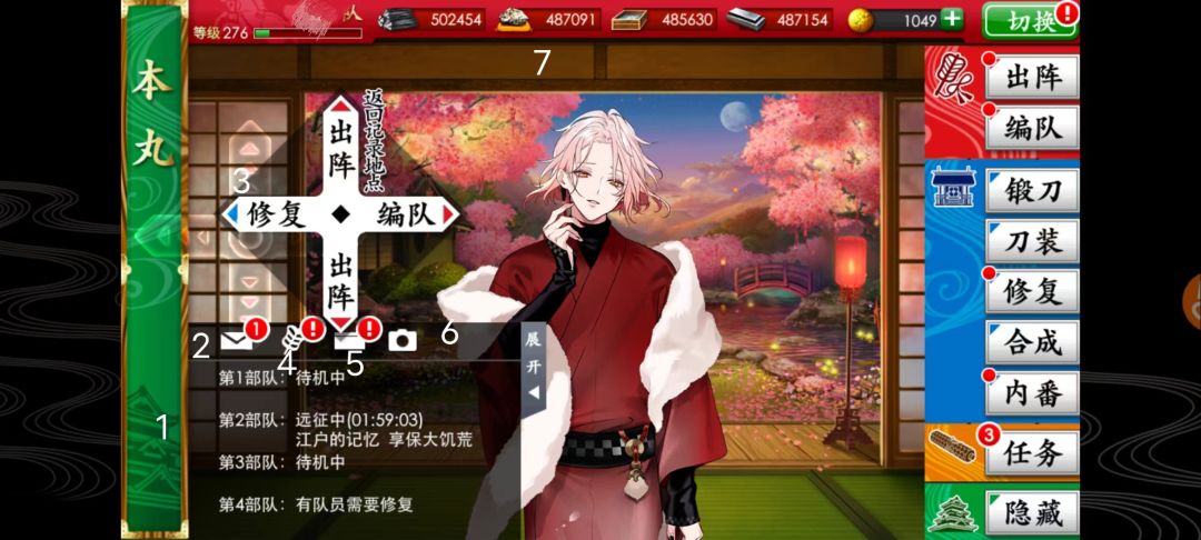 锻刀、刀装、修复、合成、内番、任务——【新手攻略】界面顺序(中)