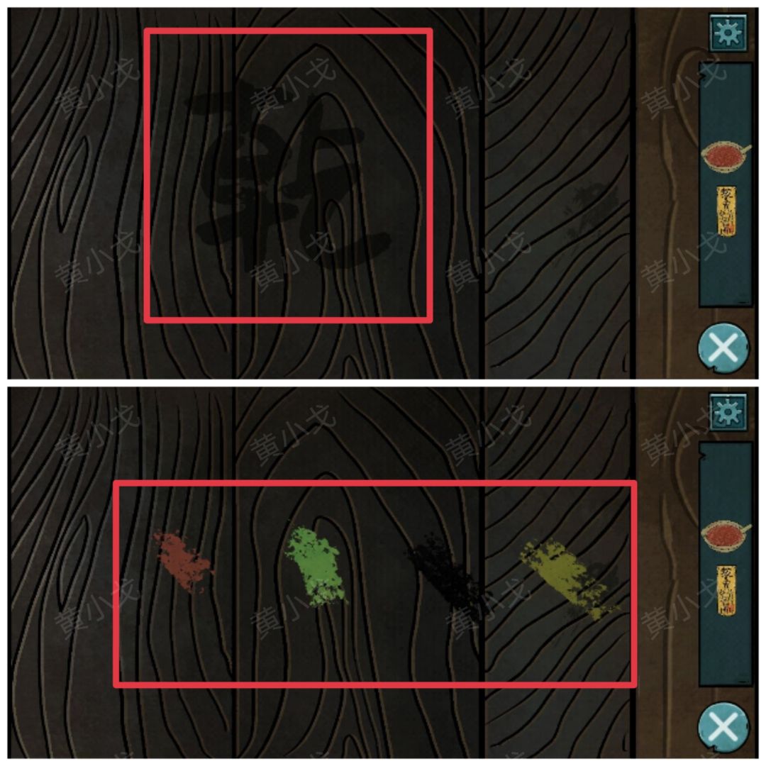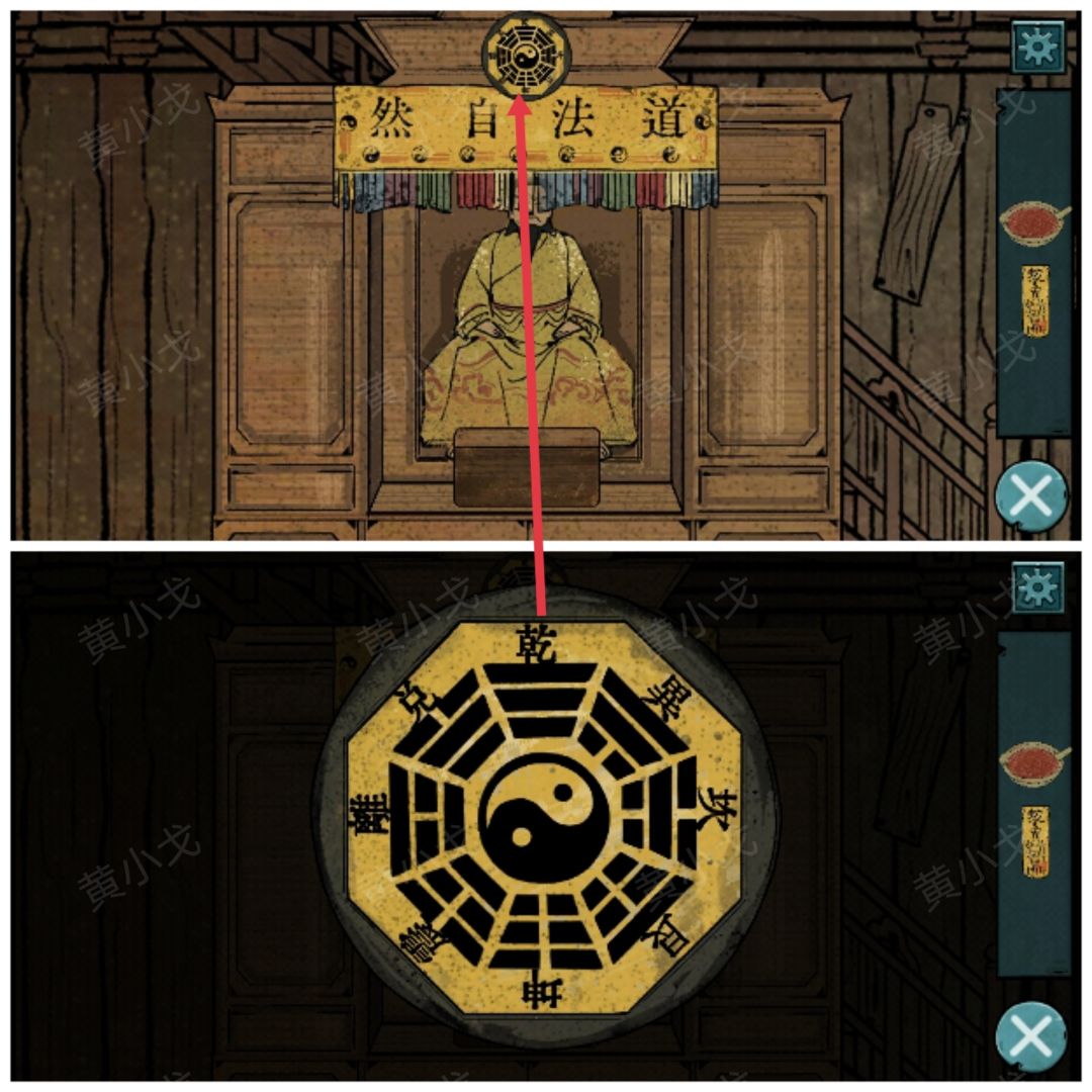 9.点击第四个房门旁边的机关,根据棺材上的涂鸦(艮离乾坤)和八卦盘上的线索,按(4715)的顺序点击按钮,打开门